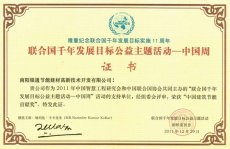[銀通公告] 南陽銀通獲聯合國千年發展目標工藝主題活動中國質量周中國建筑節 日期:2012-01-31 16:28:18
