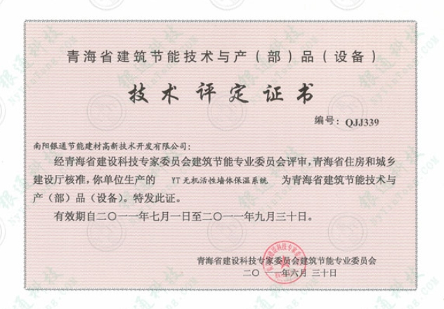 青海省建筑節能技術與產(部)品(設備) 有效期自2011年7月1日至2011年9月30日