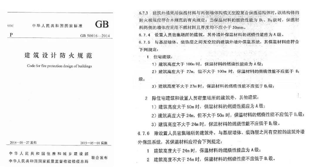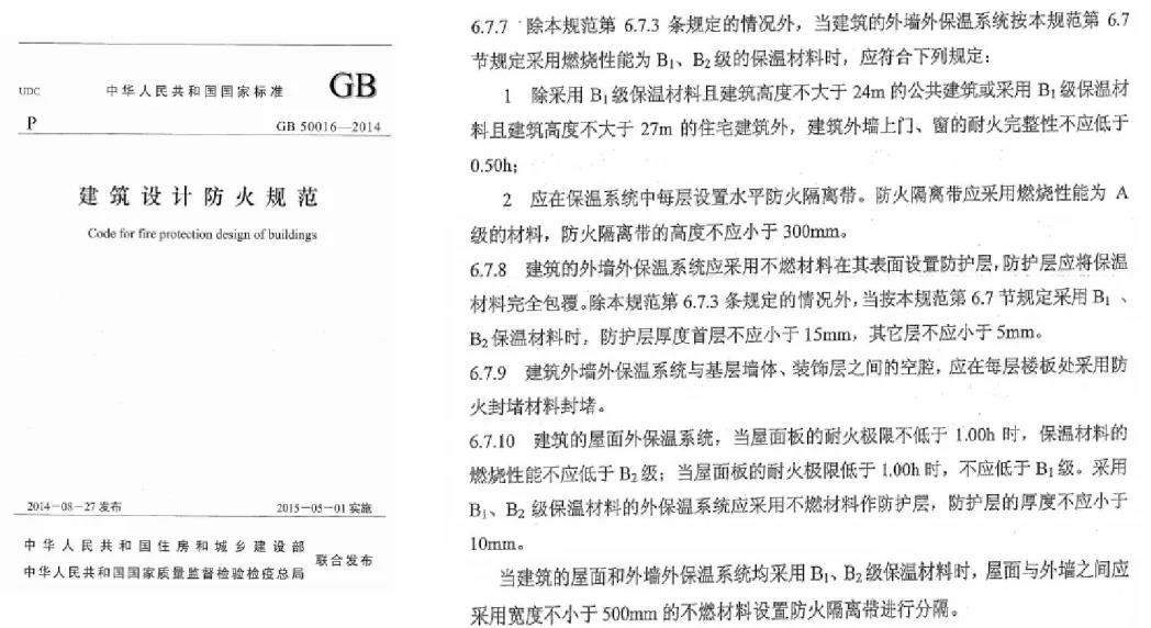 綜上所述,建筑保溫雖然在中國建筑行業的發展歷程中坎坷重重,但慶幸于國家有關部門的快速調控,相關企業的“良心”發展,如2009 年9 月,公安部、住房城鄉建設部發布了 46 號文《民用建筑外保溫系統及外墻裝 飾防火暫行規定》(公通字[2009]46 號)即規定民用建筑外墻保溫材料的燃燒性能宜為A級,且不應低于B2。2011 年 3 月,公安部消防局發布了 65 號文《公安部關于進一步明確民用建筑外保溫材 料消防監督管理有關要求的通知》(公消[2011]65 號)規定民用建筑材料要采用燃燒性能為A級的材料。2012 年 12 月份,公安部消防局又發布了 350 號文《關于民用建筑外保溫材料消防監督 管理有關事項的通知》(公消〔2012〕350 號),終止了 65 號文,規定保溫材料可以用B1材料。