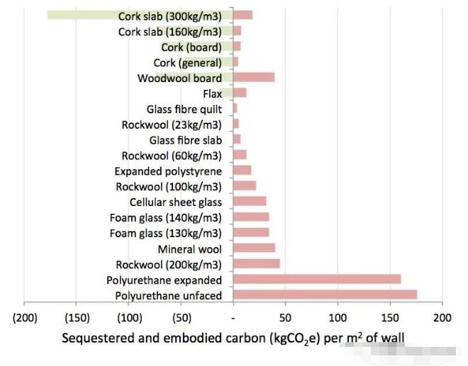 最后的結果還是表明,化學建材保溫材料,巖棉、礦棉這類材料的碳排放還是居高的。而軟木保溫材料卻成了最低碳的保溫材料。