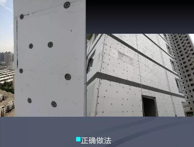 錯誤原因:保溫板豎縫未逐行錯縫,墻角未交錯互鎖。