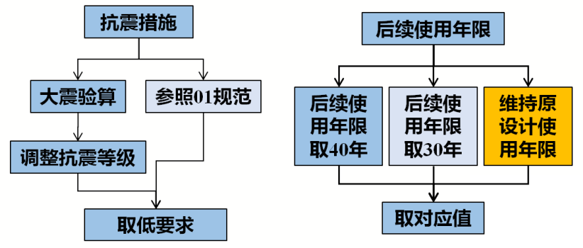 抗震措施與后續(xù)工作年限的確定見(jiàn)下圖: