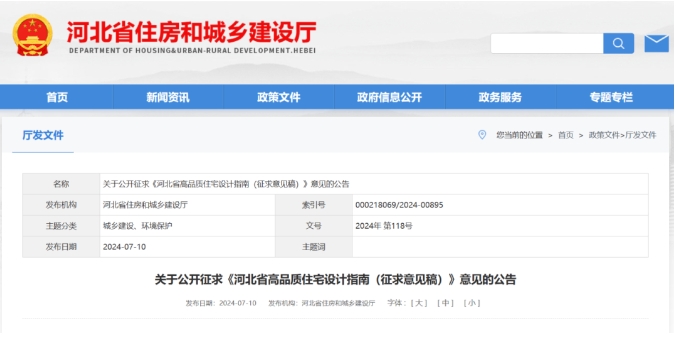 7月10日,河北省住建廳發(fā)布了《河北省高品質住宅設計指南(征求意見稿)》。
